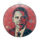 This design features a vintage inspired red, white and blue Pop Art image of political candidate, Barack Obama. The background is faded grunge with stars..
