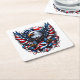 These paper coasters are shown in a patriotic July 4th stars and stripes eagle print design.