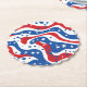 These paper coasters are shown in a patriotic July 4th stars and stripes mod print design.