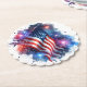 These paper coasters are shown in a patriotic July 4th stars and stripes flag print design.