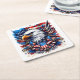 These paper coasters are shown in a patriotic July 4th stars and stripes eagle print design.