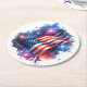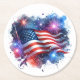 These paper coasters are shown in a patriotic July 4th stars and stripes flag print design.