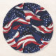 These paper coasters are shown in a patriotic July 4th stars and stripes flag print design.