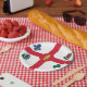 The design prominently displays the flag of Montreal, chraacterised by a red cross dividing a white background into four quadrants. Each section features a floral emblem representing the city’s founding communities: the blue fleur-de-lis for the French, the red rose for the English, the purple thistle for the Scots, and the green shamrock for the Irish. At the centre of the cross sits a vibrant red maple leaf, symbolising Canadian unity and pride. This iconic design brings cultural significance and colour to your table setting.