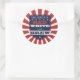 Bring attention to your party invitations or correspondence with this bright, eye-catching design. A navy blue shield shape is set against a red and white starburst stripe pattern. Inside the shield are the words "Three cheers for the red white and brew" along with stars and a modern ribbon banner. Perfect for summer barbecues, political or election day parties, or July 4th celebrations.