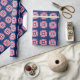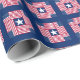 This patriotic wrapping paper is printed with a repeating pattern of the American Flag arranged in quilt like squares and a white star at the centre of each on a blue background.