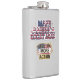 The flask itself is fine. It’s a cheap flask, obviously bought in bulk, however am prepared to overlook that. Given that it is a personalized item, I would have liked to have seen gift boxing instead of the generic packaging. Terrible printing, and/or quality. It’s a cheap, tacky vinyl. It is not cut straight and is also applied in a way that it is overhanging the bottom, causing the glue to catch on items and it will eventually roll and tear, damaging the wrap.
