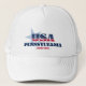 Pennsylvania trucker hat. A bold typography design with a blue star that highlights the US state of Pennsylvania, its year of statehood in 1787, and the initials of the USA infused with the stars and stripes of the American flag. It makes a wonderful patriotic gift or souvenir.