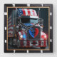 This charming wall clock features a delightful group of patriotic pets, including dogs, cats, and a bunny, adorned in festive red, white, and blue bandanas and hats. Set against a backdrop of balloons and an American flag, this unique timepiece is perfect for animal lovers and adds a whimsical touch of national pride to any home decor.