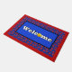 Super fun red, white, and blue pickleball party, welcome mat to our patriotic pickleball tournament, or a Fourth of July pickleball party. Red pickleball paddles with white stars on a navy blue background dotted with blue pickleball balls. Colorful pickleball-themed gift, birthday present, anniversary gift, congratulations, thank you gift for your pickleball-loving mom, dad, uncle, aunt, brother, sister, neighbor, grandpa, grandma, husband, wife, friend, or work colleague who won't stop talking about pickleball.
