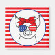 Funny patriotic pig in American flag sunglasses and head scarf.