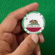 California Flag Poker Chips, Durable and Decorative, Flag Design, California-Themed Gaming Accessory, High-Quality Construction, Adds a Unique Touch to Your Poker Night, Celebrates California Culture, Perfect for Any Poker Enthusiast, Eye-Catching Design, Adds Local Charm, Practical and Stylish, Authentic California Flair, Enhances Your Gaming Experience, Perfect for Any California Fan, Long-Lasting Quality, California Pride Accent, Gaming Keepsake, Refined and Playful.