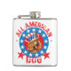 The flask itself is fine. It’s a cheap flask, obviously bought in bulk, however am prepared to overlook that. Given that it is a personalized item, I would have liked to have seen gift boxing instead of the generic packaging. Terrible printing, and/or quality. It’s a cheap, tacky vinyl. It is not cut straight and is also applied in a way that it is overhanging the bottom, causing the glue to catch on items and it will eventually roll and tear, damaging the wrap.