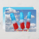 Red, white and blue popsicles with summer sky background for summer party invitation.