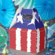 A fun and funky celebration of the United States featuring a line of hand-drawn stars on a bright blue field with rough stripes of red and white below.