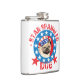 The flask itself is fine. It’s a cheap flask, obviously bought in bulk, however am prepared to overlook that. Given that it is a personalized item, I would have liked to have seen gift boxing instead of the generic packaging. Terrible printing, and/or quality. It’s a cheap, tacky vinyl. It is not cut straight and is also applied in a way that it is overhanging the bottom, causing the glue to catch on items and it will eventually roll and tear, damaging the wrap.