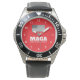 Red dial MAGA Trump watch for men. Keep America Great with USA flag. Support the republican party campaign. Patriotic design with American flag. Keep America Great. Make America Great Again.