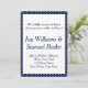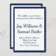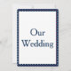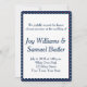 Patriotic Red, White and Blue Wedding Invitation has deep blue text on a white background. The blue border has red and white polka dots. This invitation is perfect for 4th of July wedding invitations.