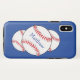 This iPhone X case displays red and white baseballs surrounded by a blue background. Easily personalise the text for a special sports fan or remove entirely. Customise the blue background to the colour of your choice.