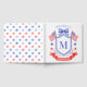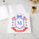 This patriotic bridal shower guest book design features a watercolor crest with a light red white and blue patriotic crest with American flags and a blue bow. You can personalize with your monogram and name.