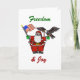 This is another one of my patriotic Christmas designs that represent the spirit of the holidays along with the patriotic spirit and pride. This one has Santa holding the American Eagle (that has a candy cane in his mouth) while he waves the US Flag with the other hand. You can customise this card any way you like.