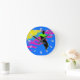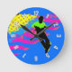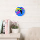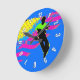 Patriotic Scooter Rider and US Flag Artwork Round Clock