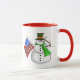 Here's our snowman, saluting with one hand and having a flag as his arm on the other. Although I'm showing this on a red mug, you can buy this design on any of the other colours. And, you can buy this design on any of the other drinking items offered. Makes a fun Christmas gift for a soldier. Personalise the other size with a name or whatever you wish. Designed by Sheila Cicchi, Brownielocks.com. All Rights Reserved.