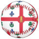 Montreal flag softball, patriotic Canadian softball, civic pride sports ball, Montreal red cross emblem ball, fleur-de-lis rose thistle shamrock softball, Canada unity maple leaf design, Quebec flag sports equipment, Montreal heritage athletic ball, softball with symbolic flag design, Montreal softball collector’s item, Canada-themed softball gear, multicultural Montreal sports item, custom softball with city flag, Montreal flag design on softball, Canada patriotic softball souvenir, display softball with Montreal emblem, historic city softball tribute, Canadian pride sports ball, softball celebrating Montreal culture, unique softball Montreal design