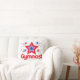 Patriotic throw pillow with the text, "GYMNAST" under a red, blue, (and a few black) stars graphic!