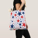 This medium size tote bag is shown with a patriotic stars print.