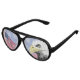 These patriotic sunglasses (shown with black frames) display a light red and blue background with white stars, the Stars and Stripe, and a Bald Eagle.. The lenses include full colour printing on scratch resistant, waterproof, pinhole vinyl. ►Available in three frame styles (Aviator as shown, Adult Retro, and Kids Retro) and several frame colours. A cool gift!
