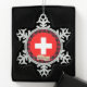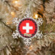 Patriotic Switzerland, buffalo plaid, Swiss Flag Snowflake Pewter Christmas Ornament
