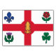 Perfect for events, receptions, banquets, or national celebrations, this table card proudly displays the flag of Montreal — a symbol rich with cultural significance. The bold red cross, set against a crisp white field, frames four floral emblems representing the city’s founding communities: the fleur-de-lis, rose, shamrock, and thistle. This thoughtful design element adds both charm and meaning to any table setting.