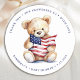 Patriotic Teddy Bear Red White Blue Baby Shower Classic Round Sticker