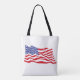 This medium size tote bag is shown with a patriotic USA Flag print.