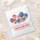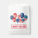 This party treat favour bag is shown in white with a festive July 4th patriotic balloons print.