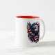 This ceramic coffee mug is shown with a patriotic USA Flag Eagle print.