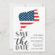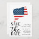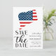 Patriotic Connecticut destination wedding save the date with a US state and flag illustration.
