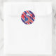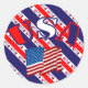 This sticker is decorated with red, white, and blue stripes, the letters "USA", and the US Flag.