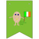 This awesome bunting features a funny cartoon of an egg with arms and legs. The egg has arms and legs and a small crack in its head exposing the white inside. It has blue eyes with a black pupil and a big smile where the yolk of the egg can be seen. The eggshell looks rough. This patriotic Irish egg proudly holds its flag and there is green text below the flag that reads "it's all about the craic". This fun design is great for Saint Patricks Day or for proud Irish men and women.