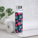 The bottle looks even better in real life. The ice cubes I put in lasts all day! I have my bottle with me all the time. It's summer and having something cold to drink feels amazing. With this bottle I always have something super cold. I have only tried the hot drink once and it lasted a long time as well. The color blue is a navy blue and the white printed on it is vibrant. It printed perfectly. I love my personalized smile water bottle.