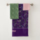 Pattern green leaf name purple pink bath towel