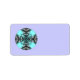 Pattern in Turquoise and Black, on Lilac Purple. Label