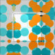 Circular orange and light blue patterns create a mesmerising mid-century modern design. Retro circles in vivid colours