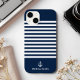 Pattern Navy blue and white bands Blue Navy Case-Mate iPhone Case