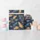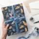 Pattern Of Blue And Gold Holly Leaves Wrapping Paper