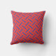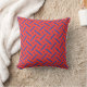 Pattern of blue dotted lines on a red background cushion