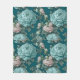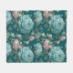 Pattern of Blue Peonies on a Green Background Fleece Blanket