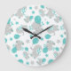 Pattern Of Elephants, Cute Elephants - Blue Grey Large Clock