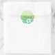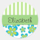 Pattern Of Flowers, Green Stripes, Your Name Classic Round Sticker